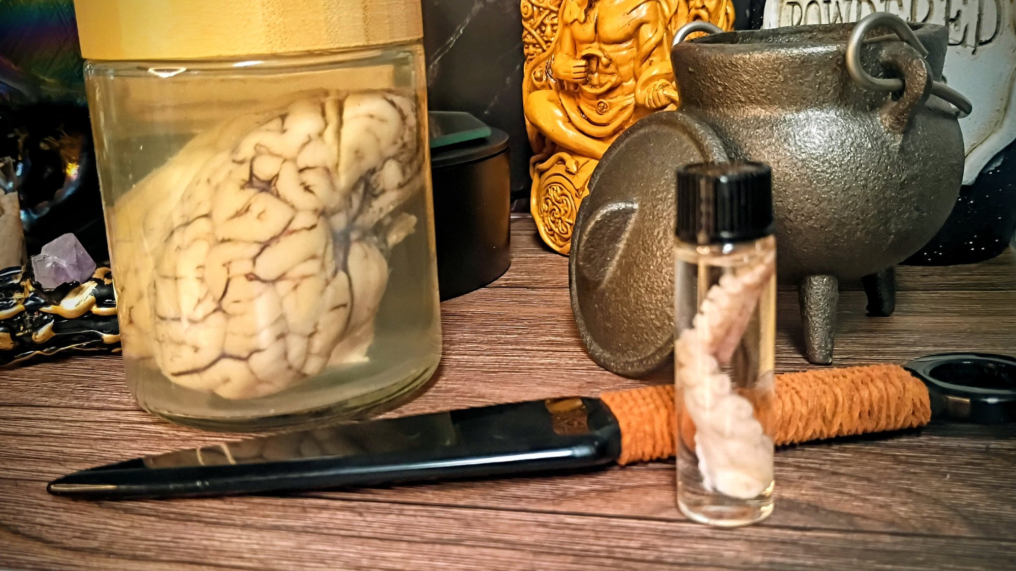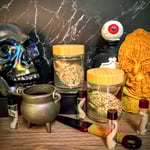 A striking addition to any altar, apothecary, or cabinet of curiosities — a memento mori and a meditation on consciousness, mortality, and magic.